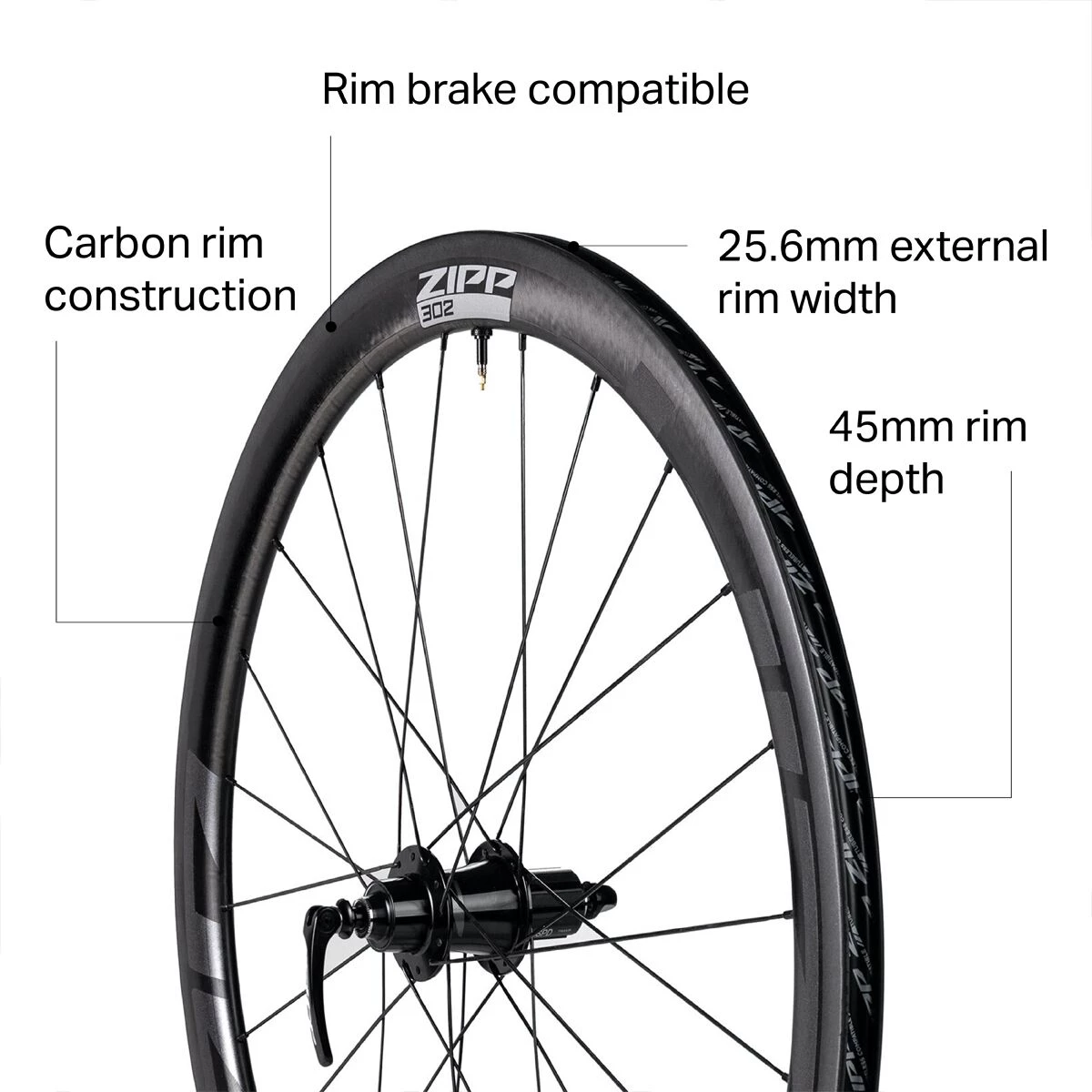 Engineered for low aerodynamic drag and precise handling in just about any type of riding conditions, the Zipp 302 Carbon Clincher Road Wheel provides the ride that Zipp is known for, at a price that makes carbon quality and performance more affordable than ever. Crafted in Indianapolis, USA, the 302βs slick carbon rim is hand-assembled to Zippβs 76/176 hubs using Belgian CX-Sprint spokes and brass spoke nipples, which results in a fast, reliable wheel that’s tough enough to survive the road less traveled, yet light enough to charge up climbs on the steepest grades.
